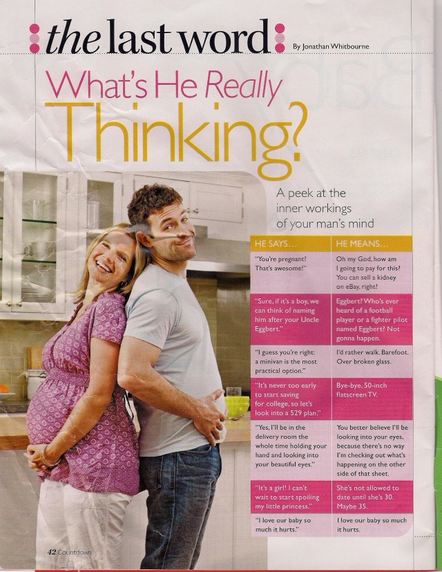 […] from Another Mister. (Go ahead and read her site. I’ll be here when you get back.) And a recent post of hers delivered this gem from a free magazine the doctor gave her: Click the picture to read the […]