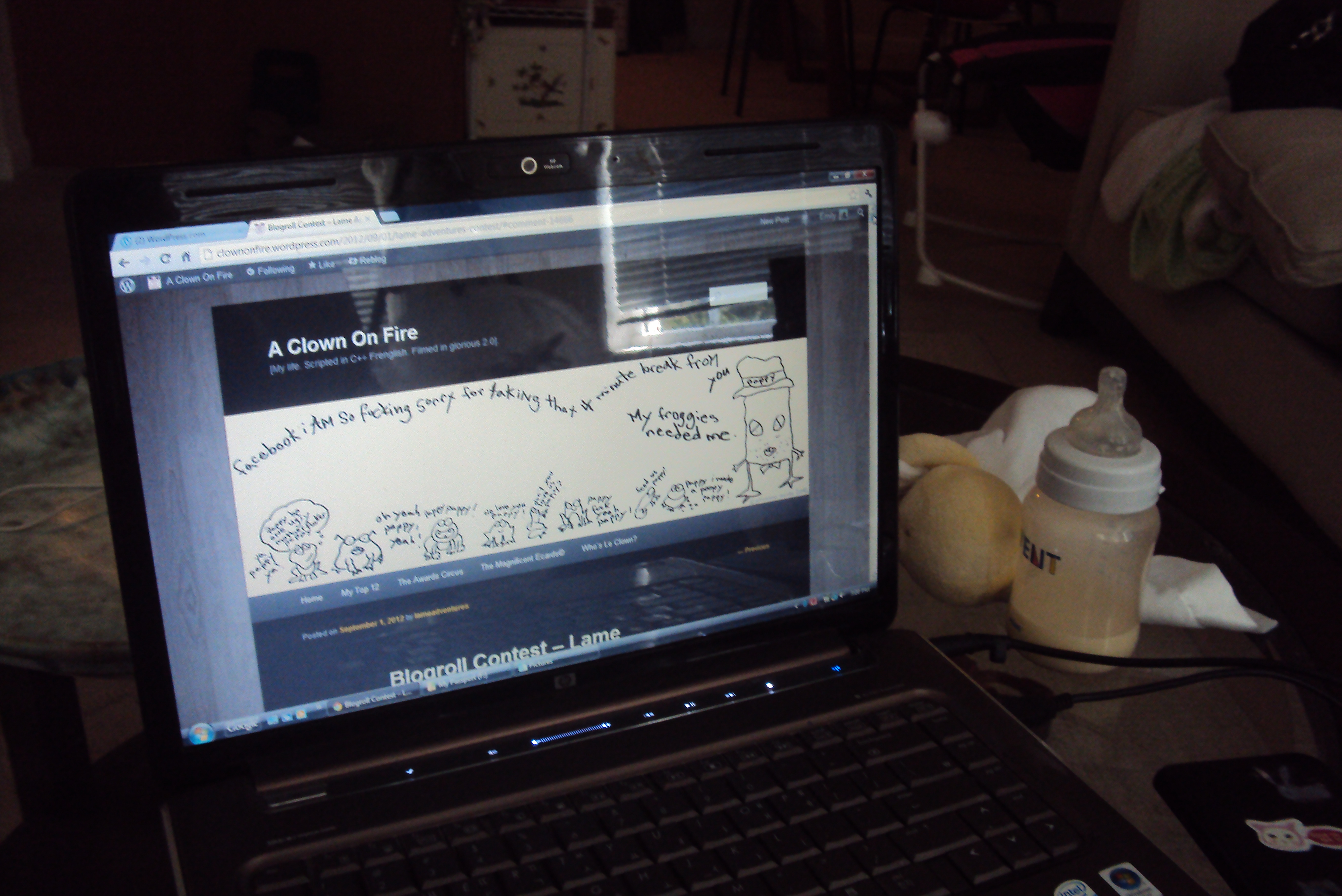 For serious, though, if you haven’t gone over to check out the festivities at A Clown on Fire, I highly recommend that you do. SO DO IT.