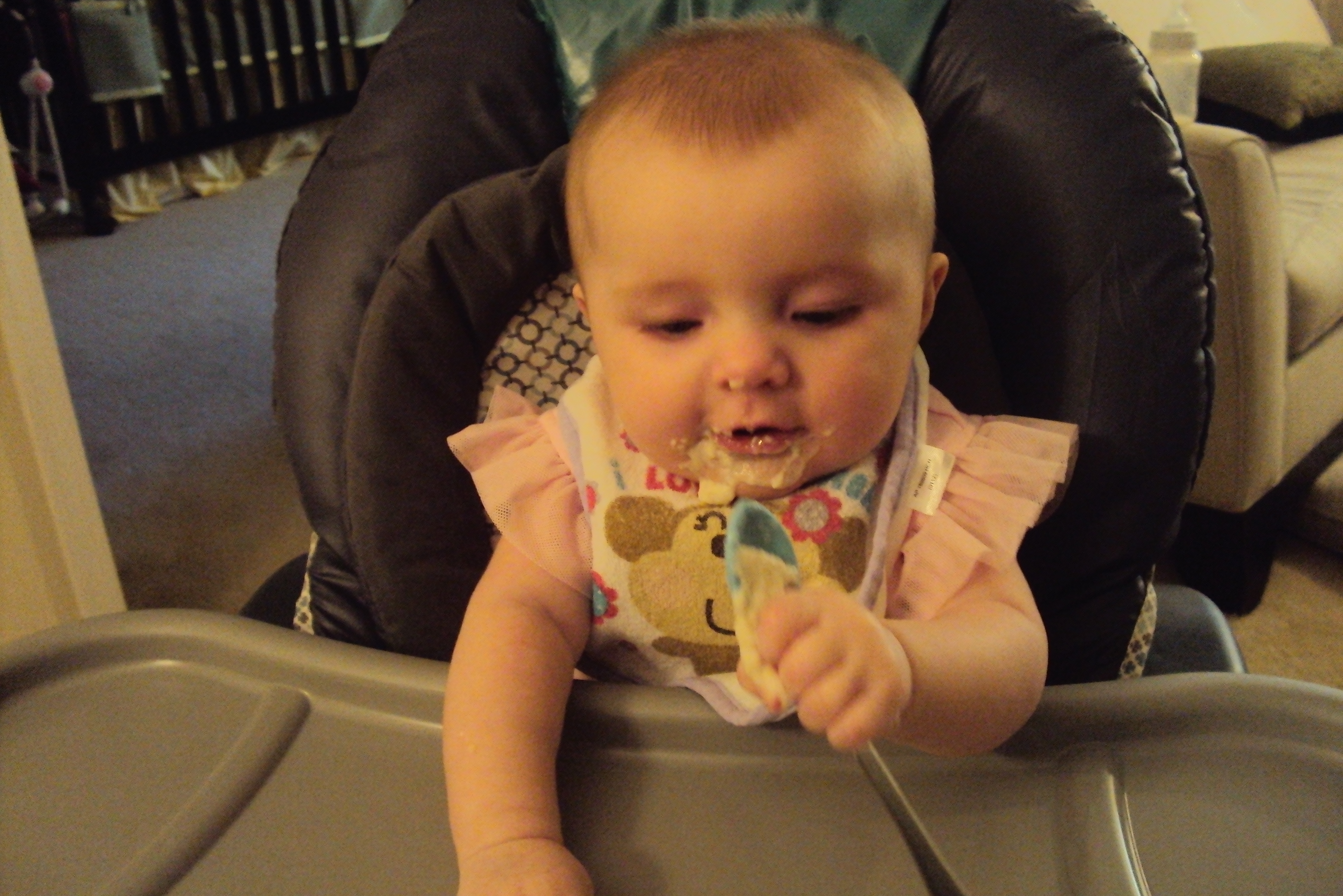 The food thing has been a huge adjustment in and of itself. Like, six weeks ago she was just drinking bottles and boob and now she has a little palate. And by “little” I mean ginormous. She gets her mom’s appetite.
