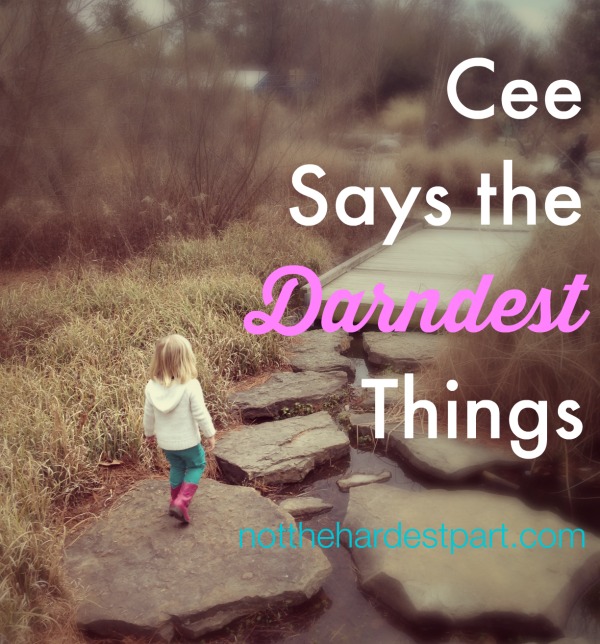 So the upside to entering the year of three is that you can look forward to LOADS of these gems!!! Most of my favorite things my ears have ever heard came out of my kids’ mouths at this age. And from the looks of it, Cee is not going to disappoint. So hilarious!!!